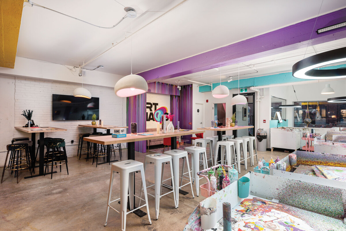 Пространство в Монреале, где люди создают картины с помощью нестандартных техник — в первую очередь spin art. Всё это происходит в расслабленной атмосфере, с музыкой, напитками и коктейлями.