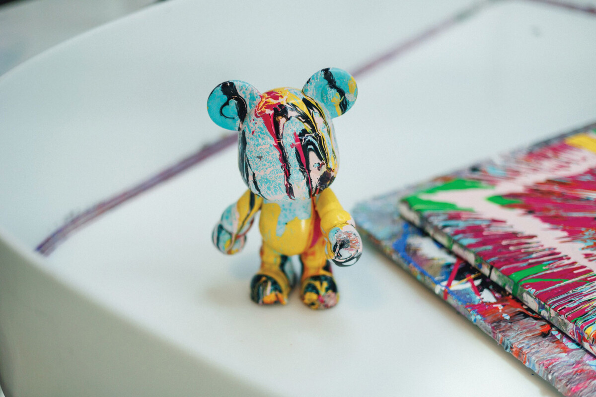 Например, мы делаем fluid toys — это маленькие фигурки (часто в форме животных), на которые выливаешь краску в технике fluid art. Цвета растекаются по поверхности, смешиваются и создают неожиданные узоры. В результате получается яркая, немного хаотичная фигурка, и каждая из них выходит совершенно уникальной.