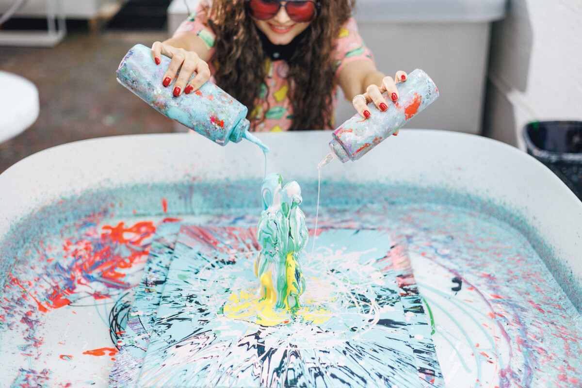 Не нужно знать техники, держать кисть или думать о композиции. Вы просто экспериментируете с цветом и движением.