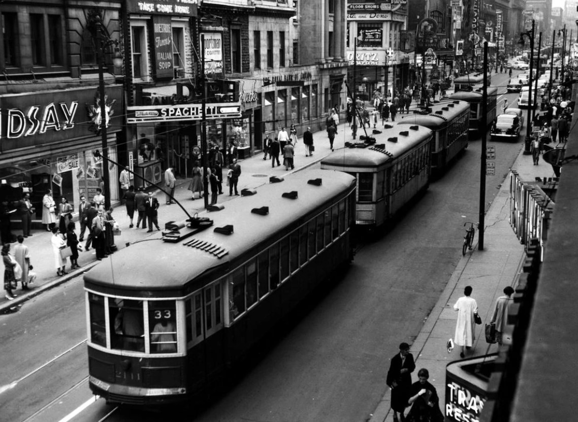К середине века трамваи, автомобили, грузовики и такси двигались по центру буквально бампер к бамперу. Горожанам приходилось пропускать несколько трамваев подряд, прежде чем попасть наконец в вагон. Кандидаты в мэры утверждали, что рабочие ежедневно теряют по часу из-за пробок.